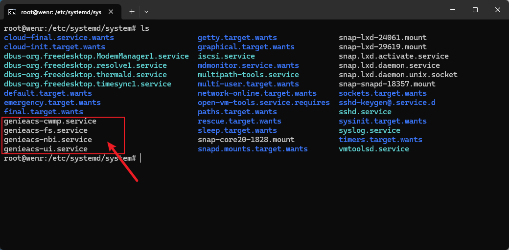 sudo systemctl enable genieacs-cwmp sudo systemctl enable genieacs-nbi sudo systemctl enable genieacs-fs sudo systemctl enable genieacs-ui