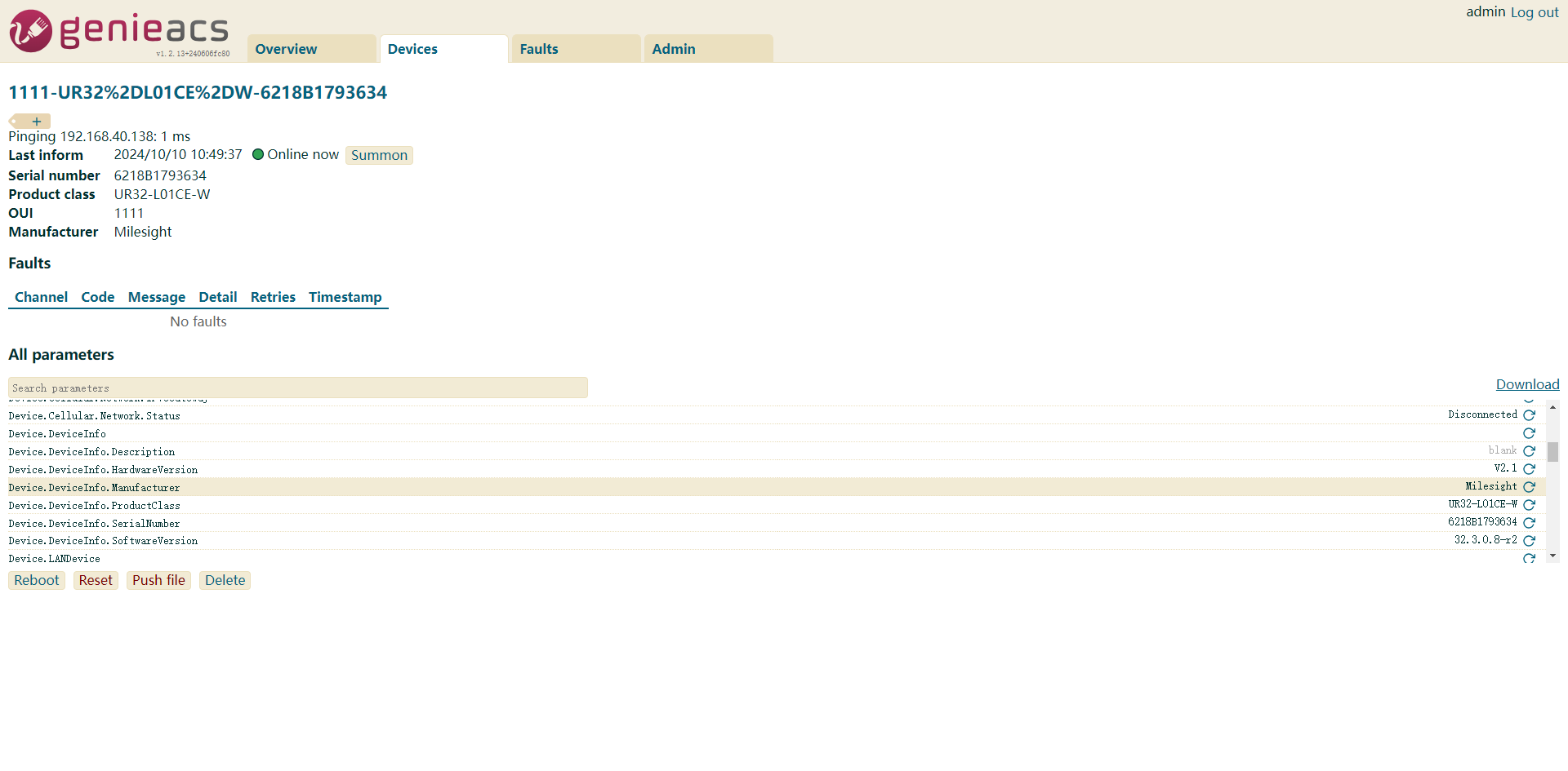 Wait for a moment, and the connected device information will be displayed in GenieACS's Devices section.