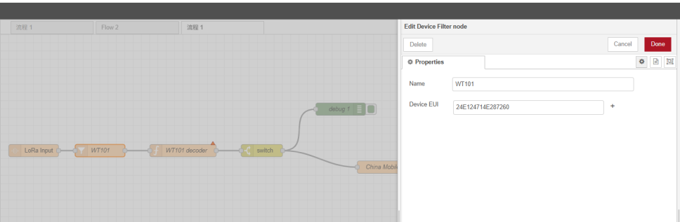 (2) Device Filter: Filter device by Device EUI. Here we configure it to filter WT101 by their device EUI.