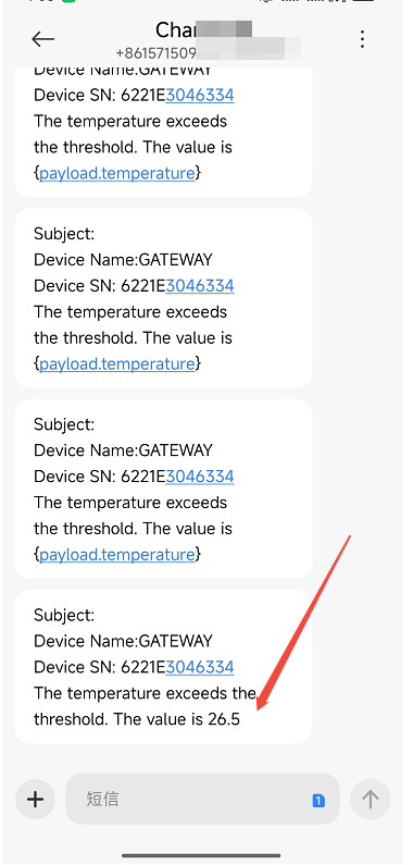 2. Check SMS, gateway will send an SMS alarm when the specified threshold is exceeded.