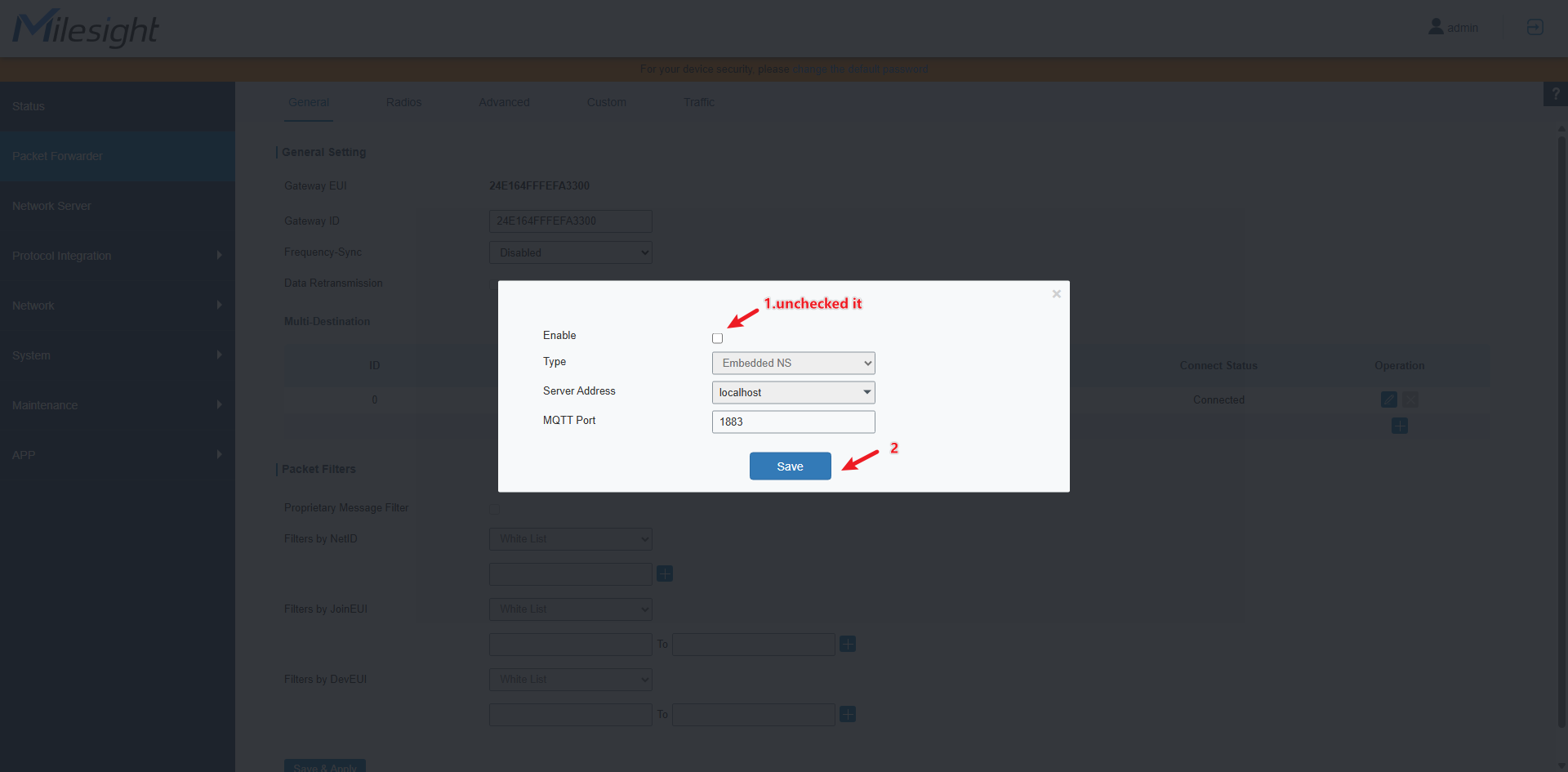 First, log in to the gateway’s management interface (refer to How to Login Web GUI of Milesight Gateway : IoT Support) and follow the screenshot instructions below: