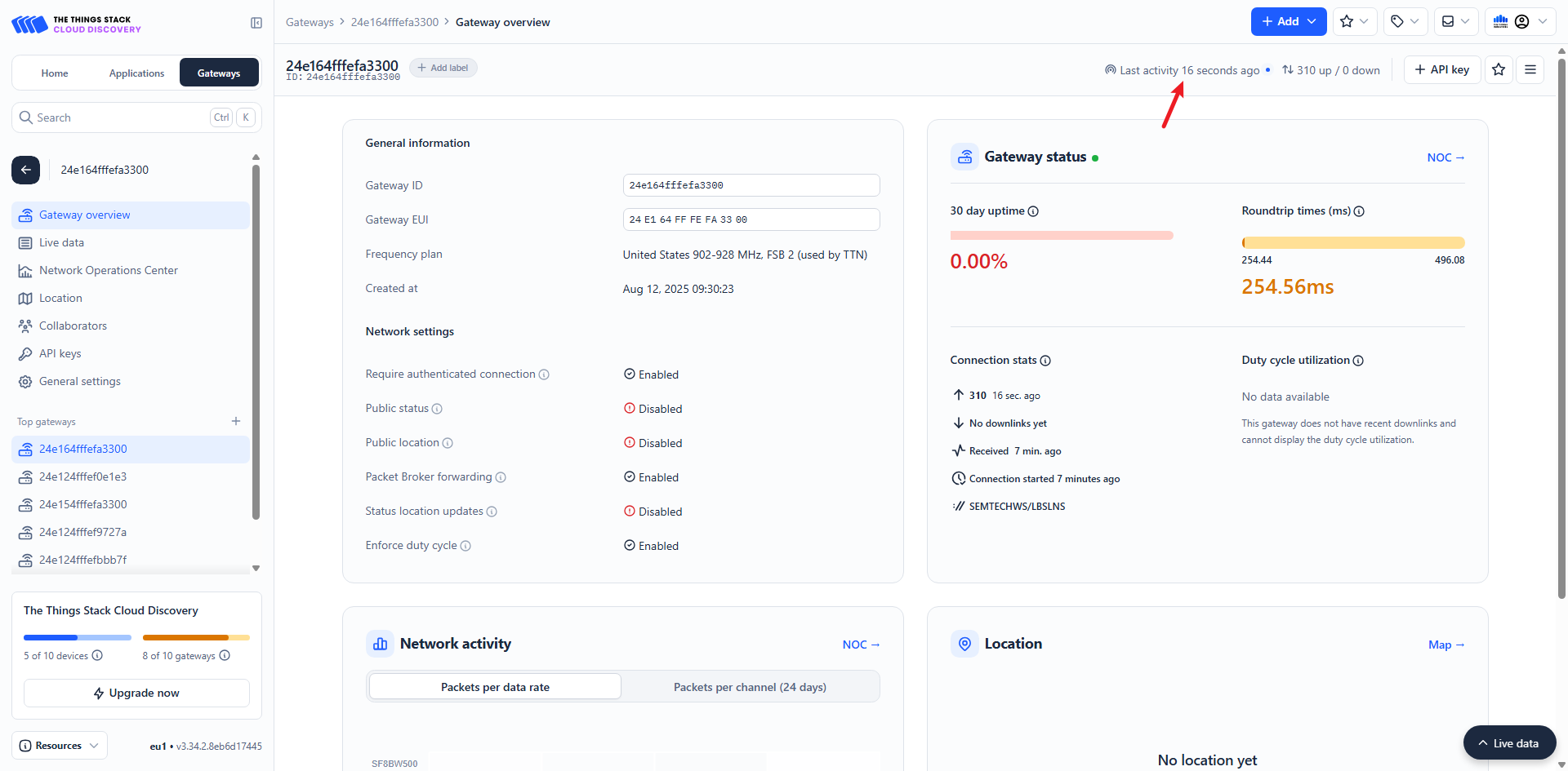 However, if project requirements allow, it is possible to configure a US915 gateway to use the eu1 The Things Industries address, and it will function correctly.