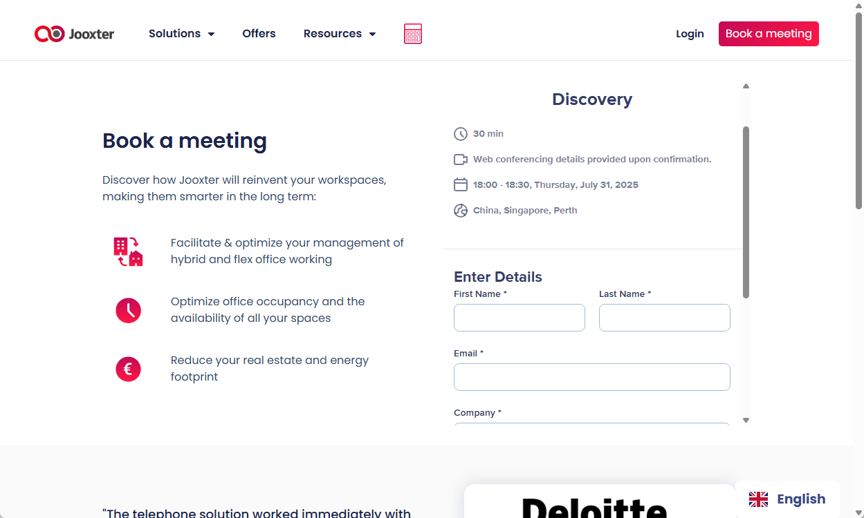 Jooxter is a French technology company founded in 2014 that specializes in providing smart workplace management solutions for enterprises. By combining SaaS software, IoT sensors, and data analytics, the platform helps businesses manage and optimize space usage efficiently in hybrid work environments. Jooxter’s system can collect real-time occupancy data, allowing employees to easily search for, reserve, or confirm desks and meeting rooms via web or mobile applications. The platform seamlessly integrates with tools like Microsoft Teams, Outlook, and Google Calendar, and also supports integration with building automation systems for centralized control and intelligent scheduling.