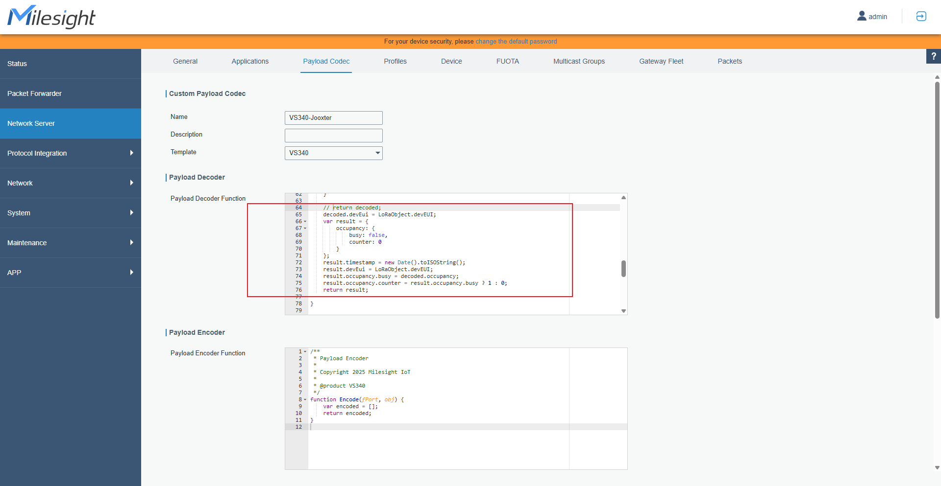Refer to the guide: “How to Use Payload Codec on Milesight Gateway”, but take note of the following:
